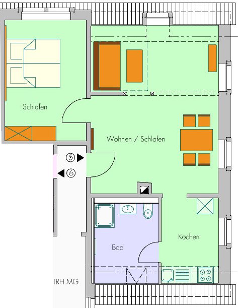 Diese drei gemütlichen Ferienapartments laden Sie zum Erholen, Träumen und Planen ein. Sie verfügen über einen modern gestalteten Wohn- und Kochbereich und ein Schlafzimmer mit Doppelbett. Das Richtige, um Abstand vom Alltag zu gewinnen und die Gemeinsamkeit zu genießen.